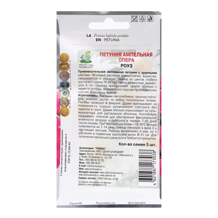 Семена цветов Петуния ампельная "Опера Роуз" 5 шт