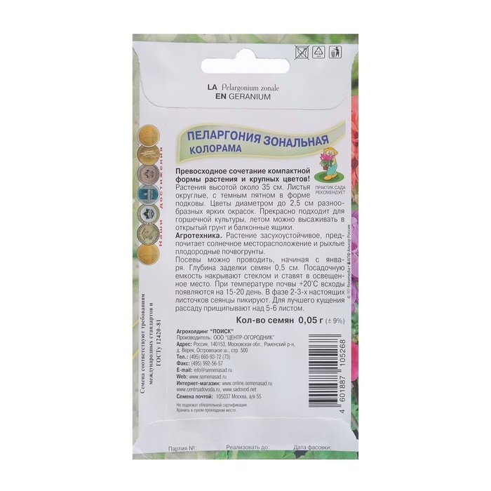 Семена цветов Пеларгония зональная "Колорама" 0,05 г