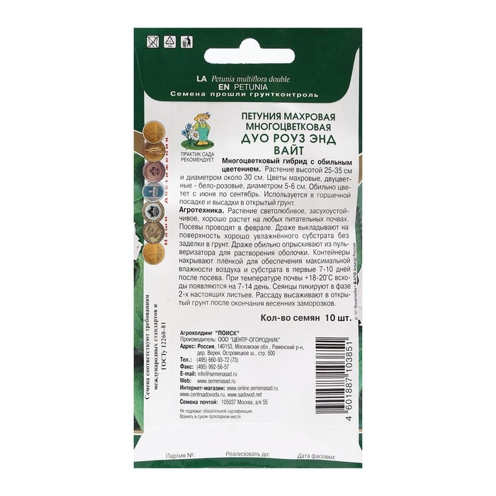 Семена цветов Петуния махровая многоцветковая "Дуо роуз энд вайт" 10 шт