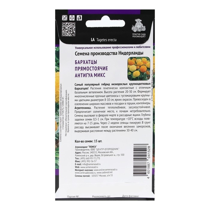 Семена цветов Бархатцы Антигуа, смесь карликовая, Сем. Алт, ц/п, 5 шт
