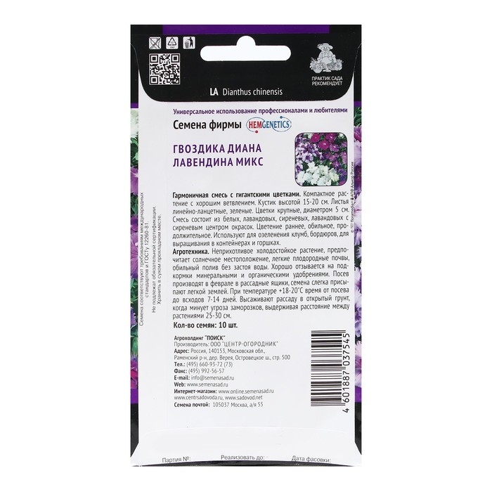 Семена цветов Гвоздика "Диана Лавендина Микс" 10 шт