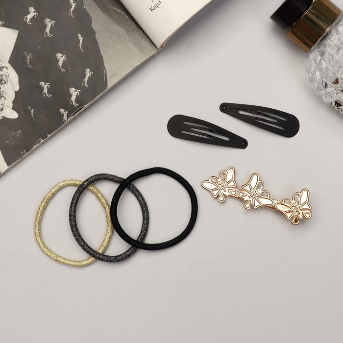Набор для волос "Лиора" (6 резинок, 3 невидимки 4,5 и 6 см) бабочки, чёрно-золотой