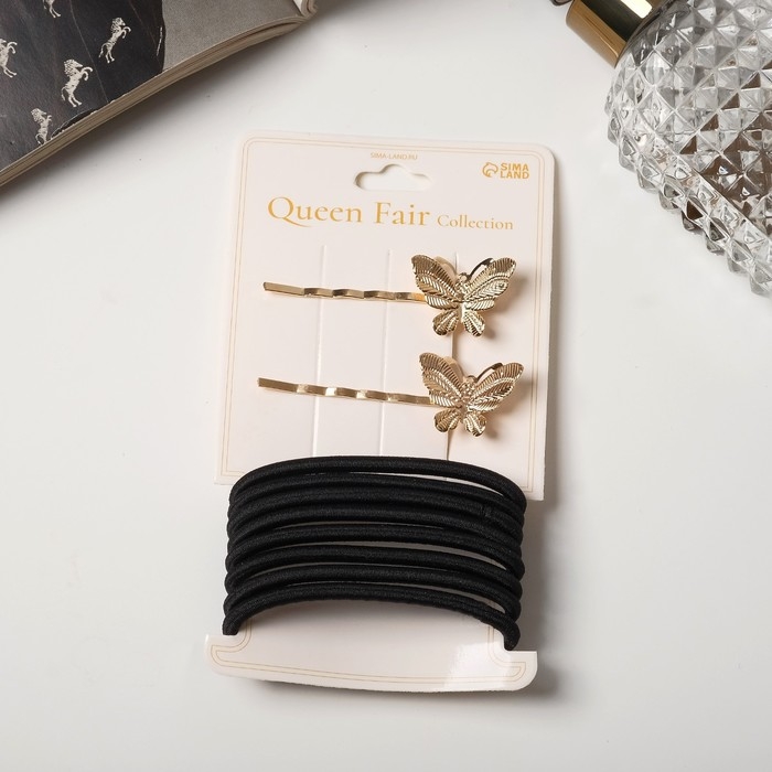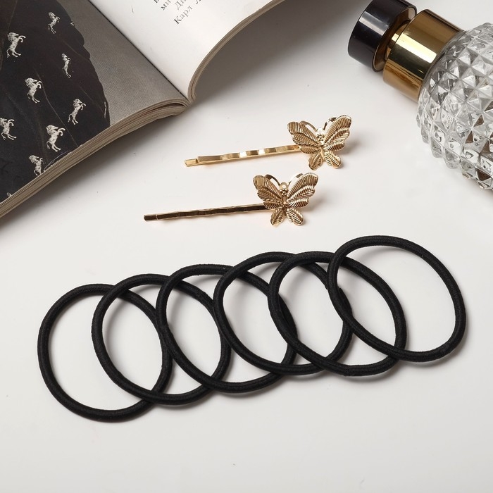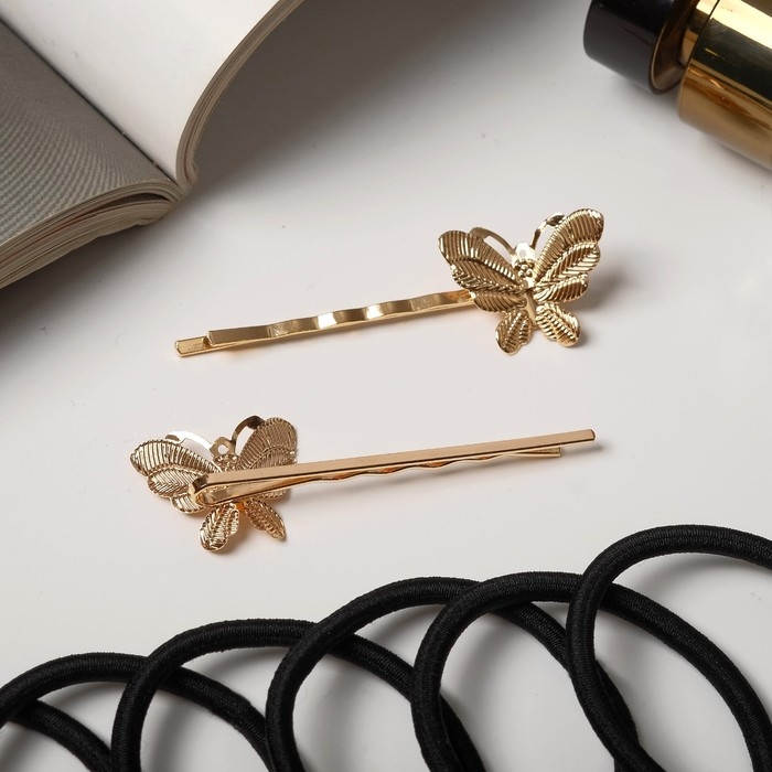 Набор для волос "Лиора" (8 резинок, 2 невидимки 5 см) бабочки, чёрно-золотой