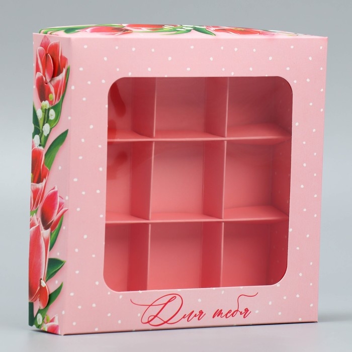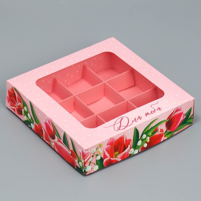 Коробка для конфет, кондитерская упаковка, 9 ячеек, «Тюльпаны», 14.7 х 14.7 х 3.5 см
