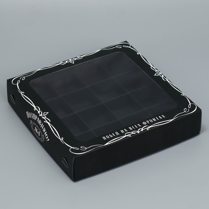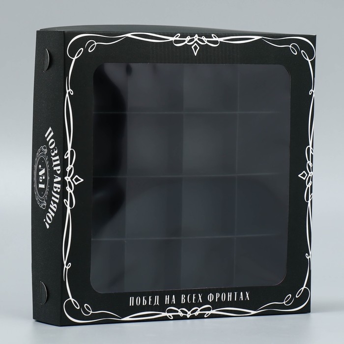 Коробка для конфет, кондитерская упаковка, 16 ячеек «Побед на всех фронтах», 18.9 х 18.9 х 3.8 см
