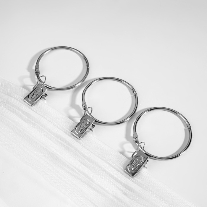 Набор для штор, кольцо разъёмное, d = 52/58 мм, 10 шт, зажим, 33 × 11 мм, 10 шт, цвет серебряный