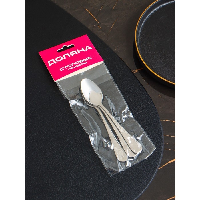 Набор ложек кофейных из нержавеющей стали Доляна, h=12,4 см, толщина 2,2 мм, 410 сталь, 3 шт, цвет серебряный
