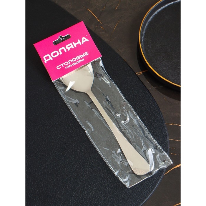 Ложка салатная из нержавеющей стали Доляна, длина 19,8 см, толщина 2,2 мм, 410 сталь, цвет серебряный