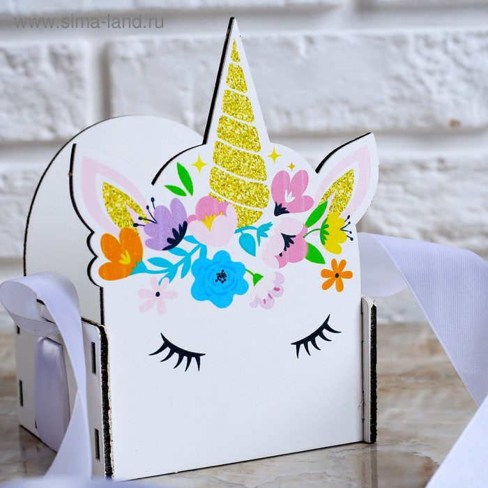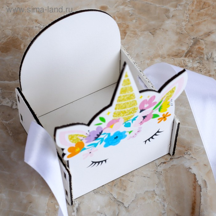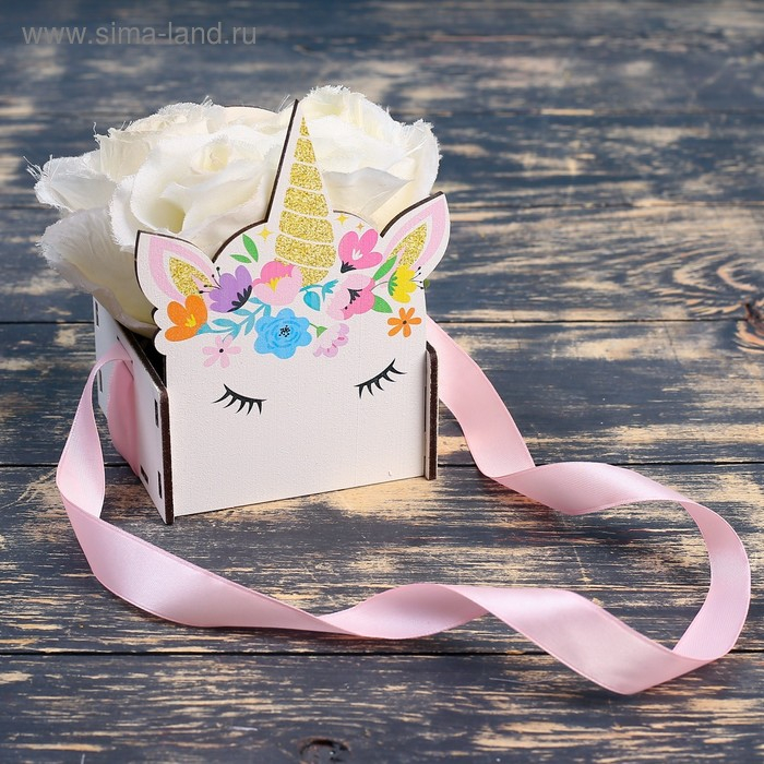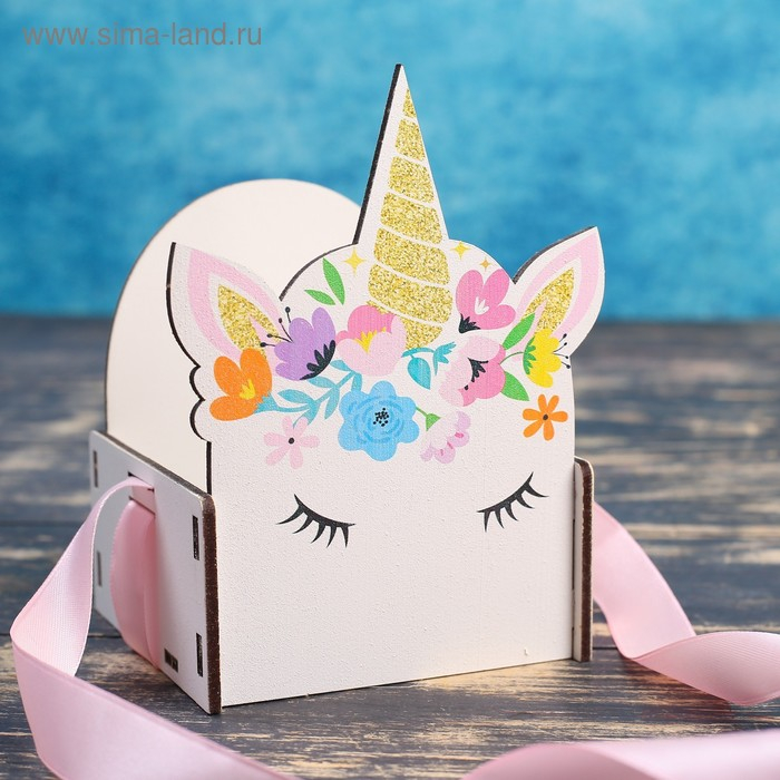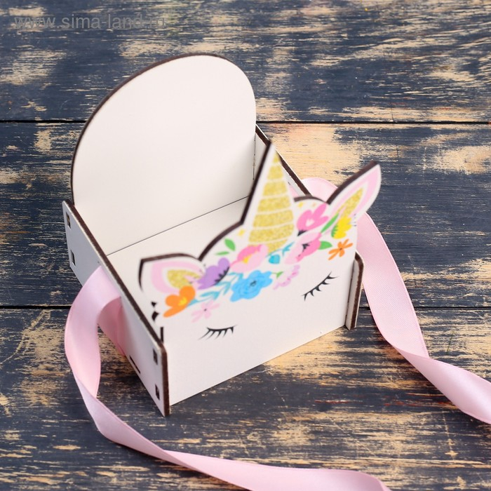 Кашпо деревянное 11×9.5×14.5 см уникальное "Конверт Единорог", ручка лента, с печатью