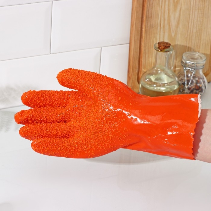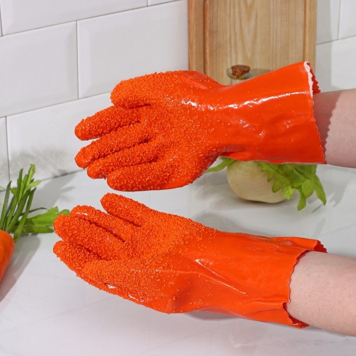 Перчатки резиновые для чистки овощей, рыбы, размер ONE SIZE