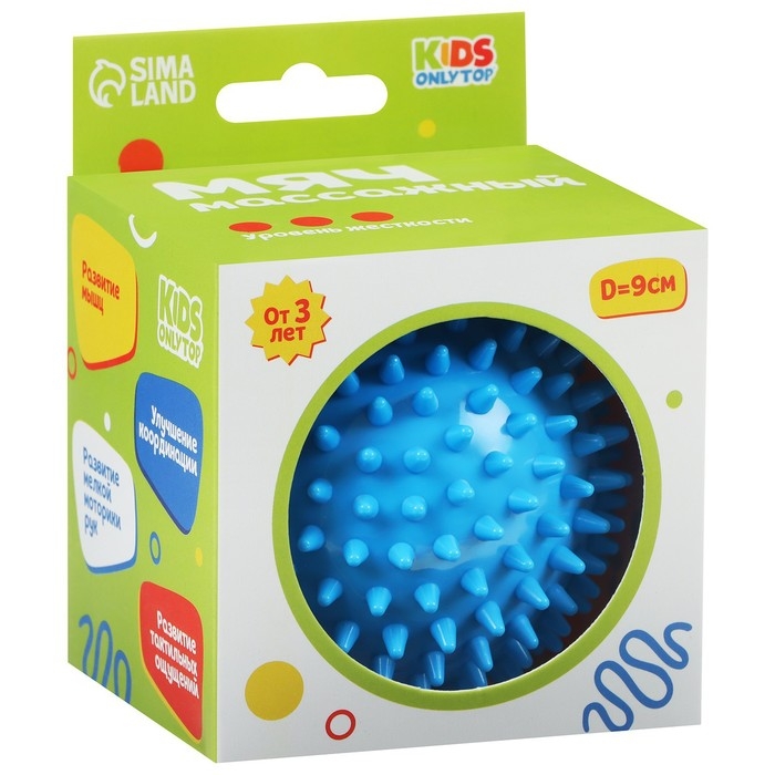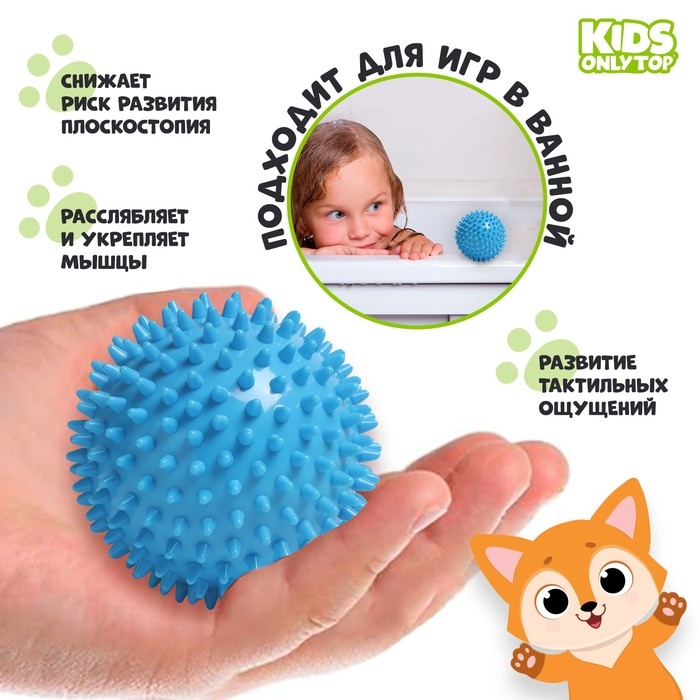 Мяч массажный ONLYTOP «Ёжик», d= 9 см, цвет голубой