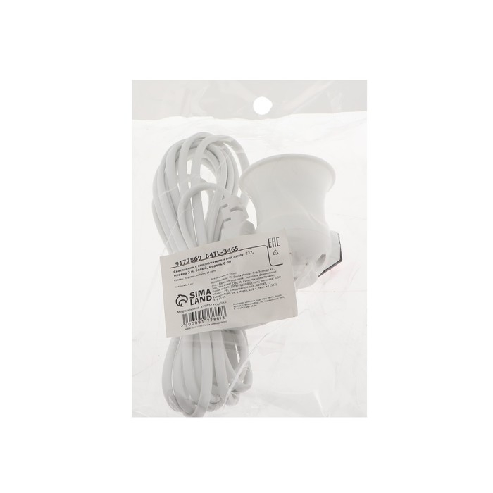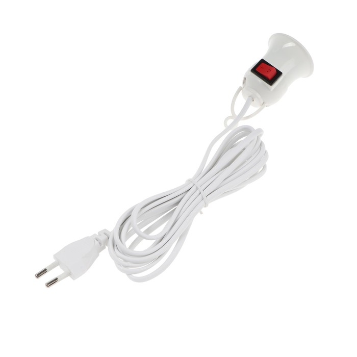 Светильник с выключателем под лампу, Е27, провод 3 м, белый