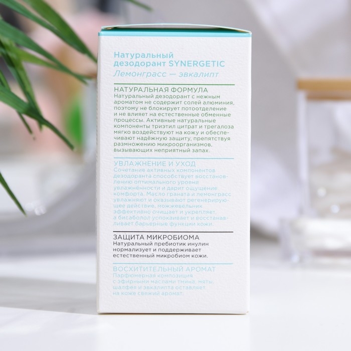 Дезодорант натуральный SYNERGETIC лемонграсс - эвкалипт, 50 мл