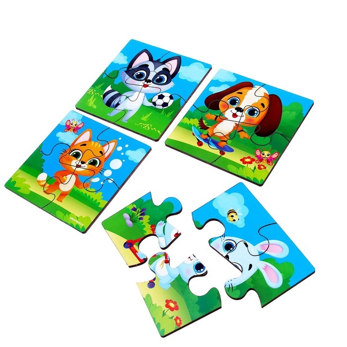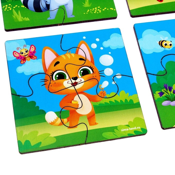 Яркий пазл подойдёт для самых маленьких деток, каждый их них состоит из четырёх элементов. Насыщенные цвета потренируют зрительное восприятие крохи. Расскажите ребёнку о временах года — это поможет развить кругозор малыша.