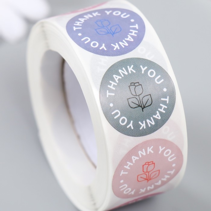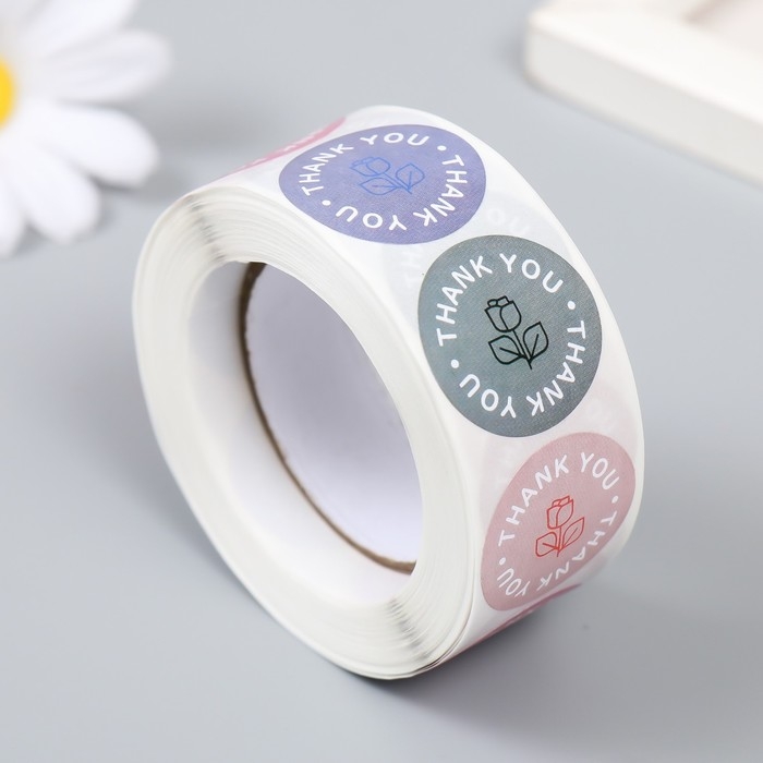 Наклейка бумага "Розочка. Благодарность" d=2,5 см 500 шт в рулоне 3х6,5х6,5 см