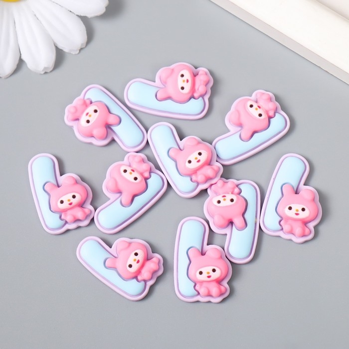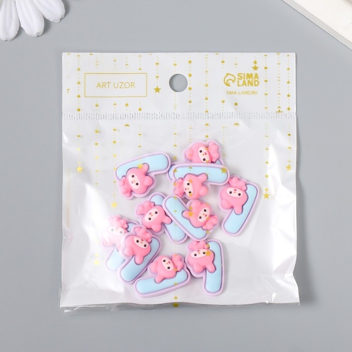 Декор для творчества "Цифра 1 со зверюшкой" набор 10 шт 2,4х1,6 см