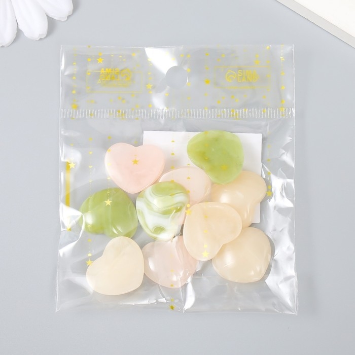Декор для творчества пластик "Каменные сердечки" набор 10 шт МИКС 2х1,7х0,6 см