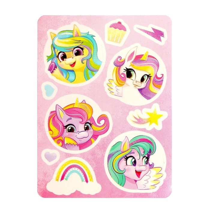 - Также в комплекте набор наклеек с изображением пони. Ими девочка сможет украсить любимые предметы!