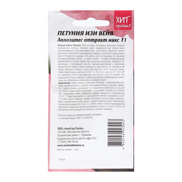 Семена Цветов Петуния "Изи Вейв Аппозитес", 5 шт