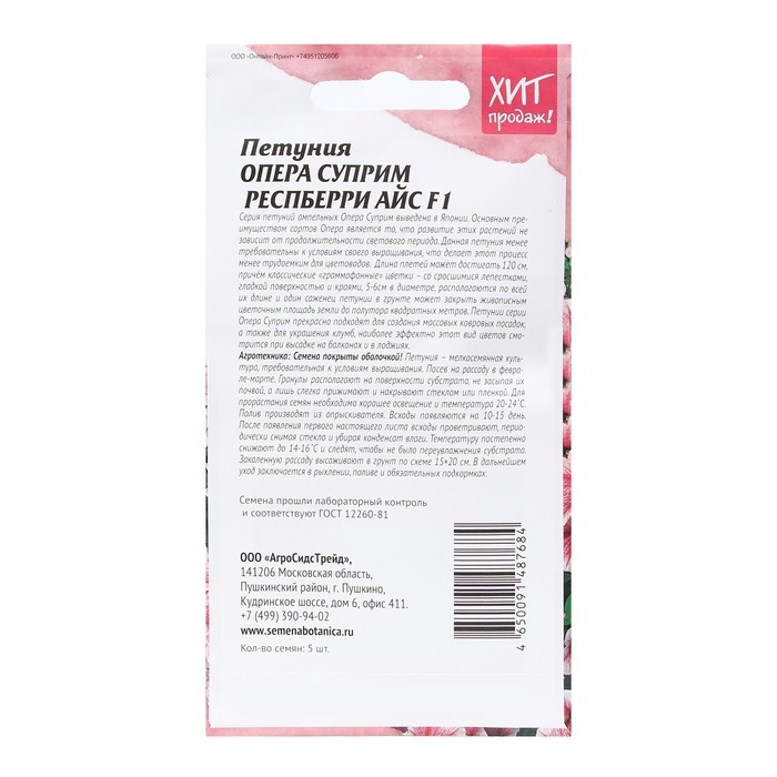Семена Цветов Петуния "Опера Суприм Респберри"