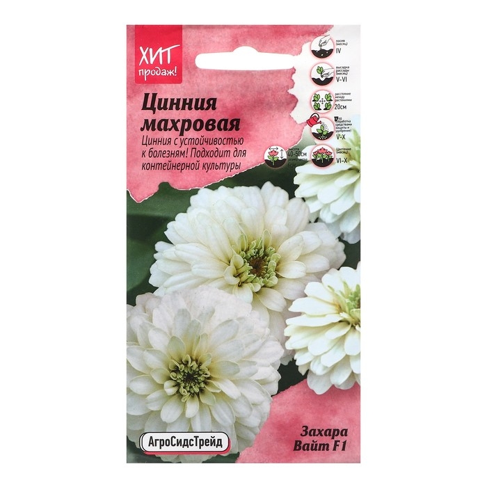 Цинния махровая захара вайт F1