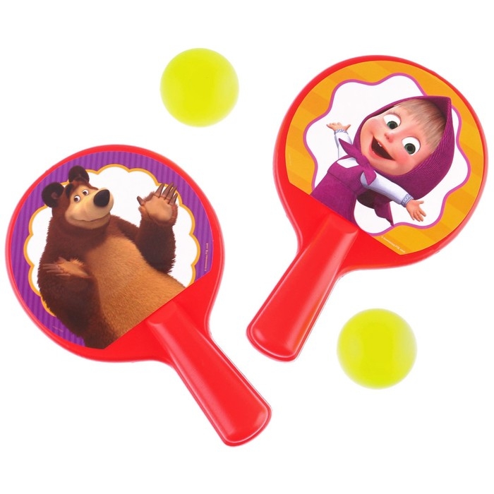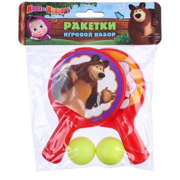 Набор игровой, ракетки 8×12 см и два мячика, Маша и медведь