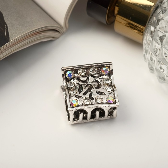 Краб для волос "Эмма" старина узор куб, 2,3 см, серебро