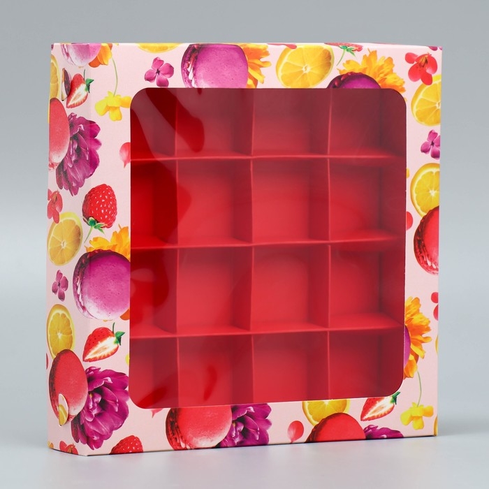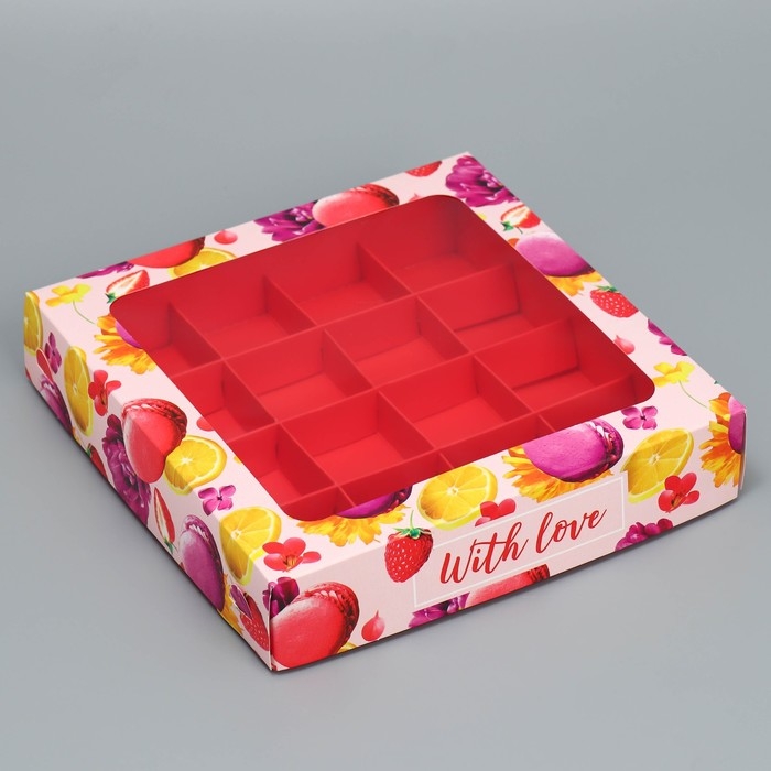Коробка для конфет, кондитерская упаковка, 16 ячеек With love, 18.9 х 18.9 х 3.8 см