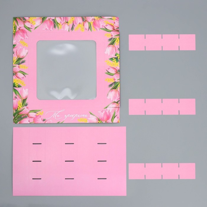 Коробка для 16 конфет , "Тюльпаны" 17,7 х 17,7 х 3,8 см. Кондитерская упаковка