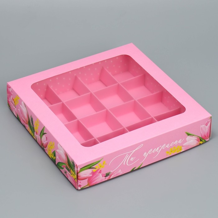 Коробка для конфет, кондитерская упаковка, 9 ячеек, «Нежность внутри», 14.7 х 14.7 х 3.5 см