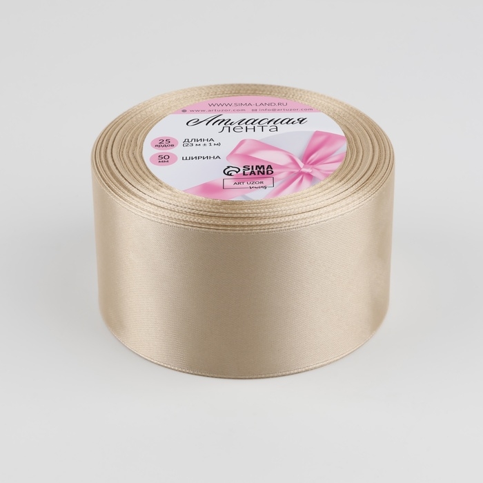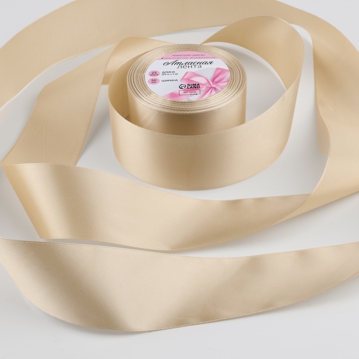 Лента атласная, 50 мм × 23 ± 1 м, цвет светло-бежевый №173