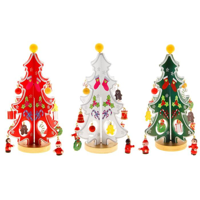 Сувенир новогодний "Елка на подставке", с серебристым контуром и звездой, цвета МИКС