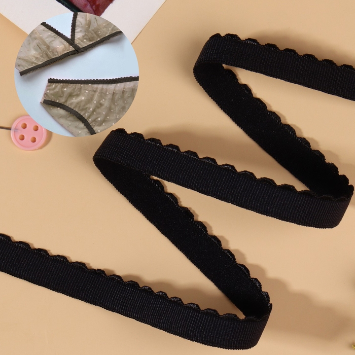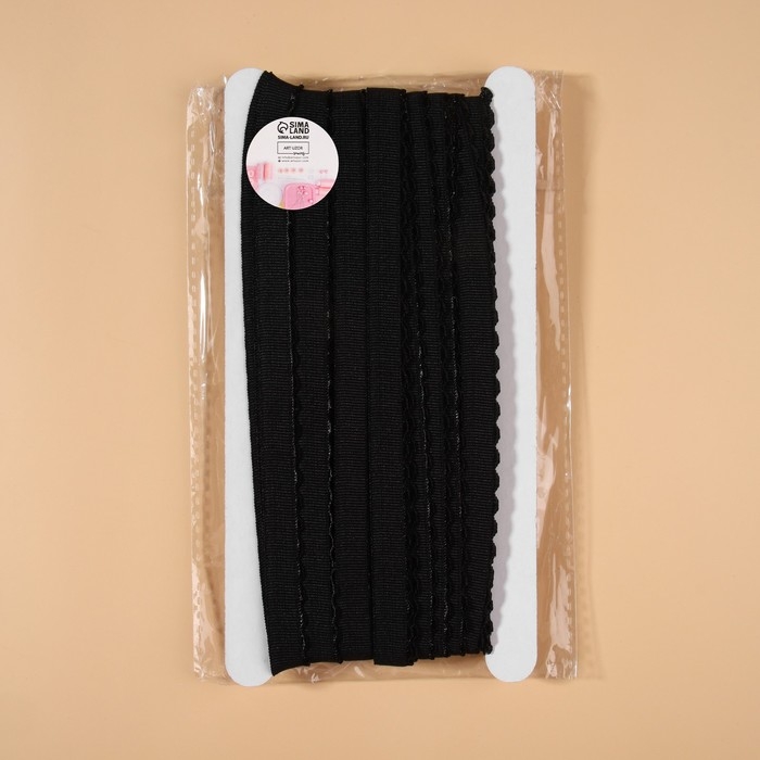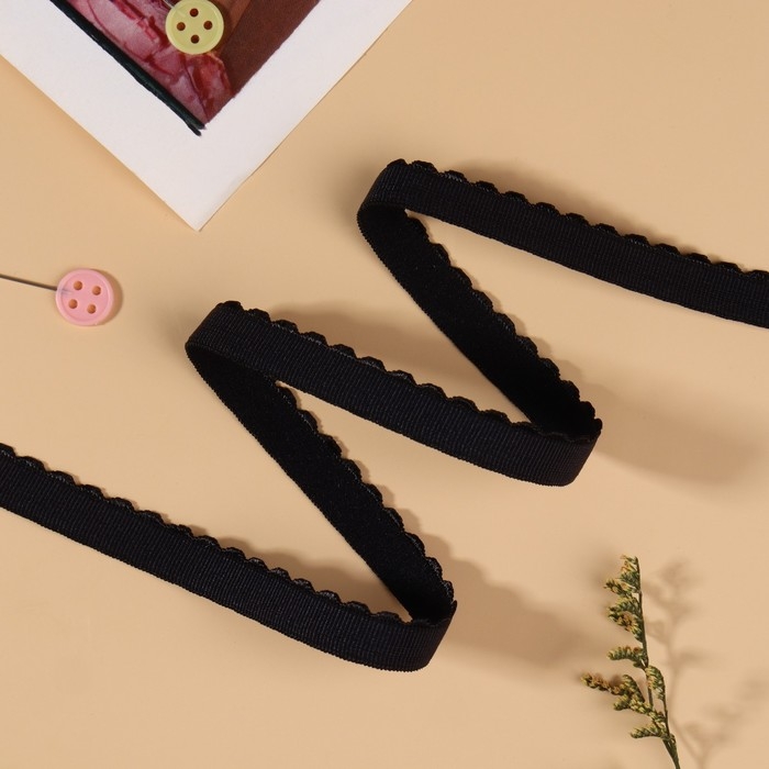 Резинка становая, с ажурным краем, 10 мм, 10 ± 0,5 м, цвет чёрный