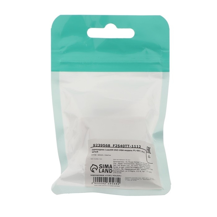 Переходник Luazon DVI (M) - VGA (F) PL-007, 24+5, белый