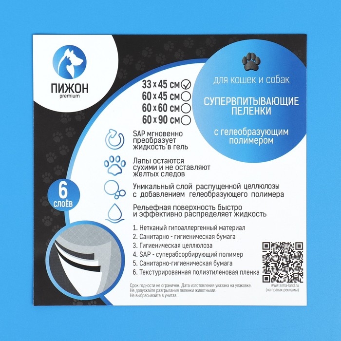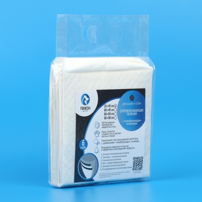 Пеленки "Пижон" шестислойные гелевые, 33 х 45 см, (в наборе 5 шт)