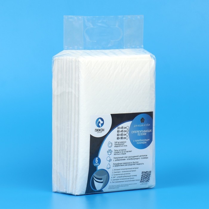 Пеленки впитывающие "ПИЖОН" для животных гелевые, 60 х 40 см, (в наборе 10 шт)