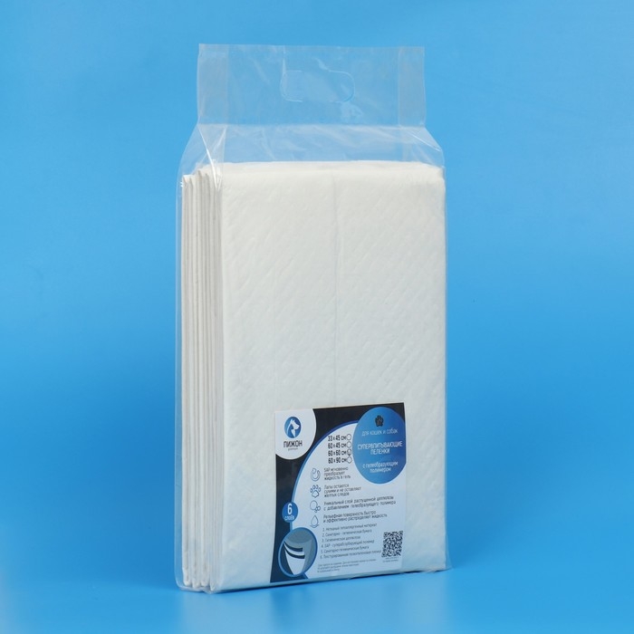 Пеленки для животных шестислойные гелевые, 60 х 60 см, (в наборе 5 шт)