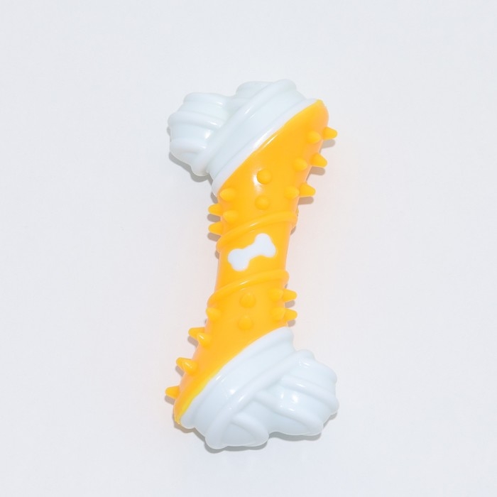 Игрушка двухслойная (твердый и мягкий пластик) "Кость", 12 см, жёлтая