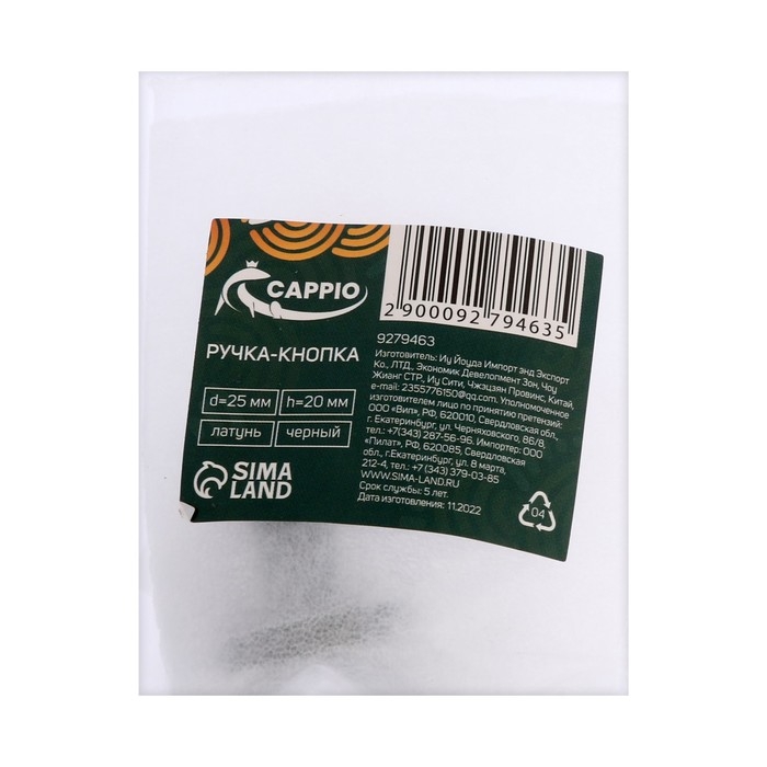 Ручка-кнопка CAPPIO, d=25 мм, h=20 мм., латунь, цвет черный