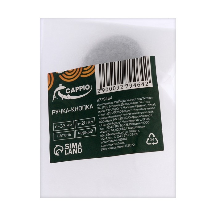 Ручка-кнопка CAPPIO, d=33 мм, h=20 мм., латунь, цвет черный