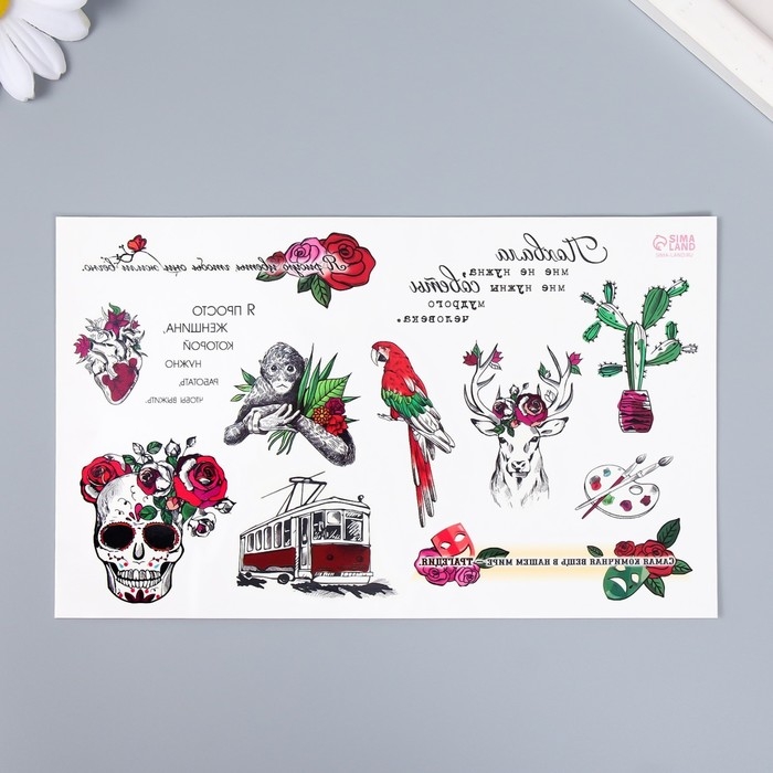 Татуировка на тело цветная "Фолк-арт" 18х11 см