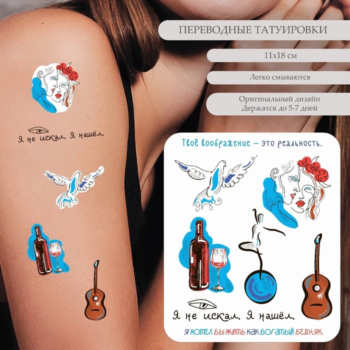 Татуировка на тело цветная "Постимпрессионизм" 18х11 см
