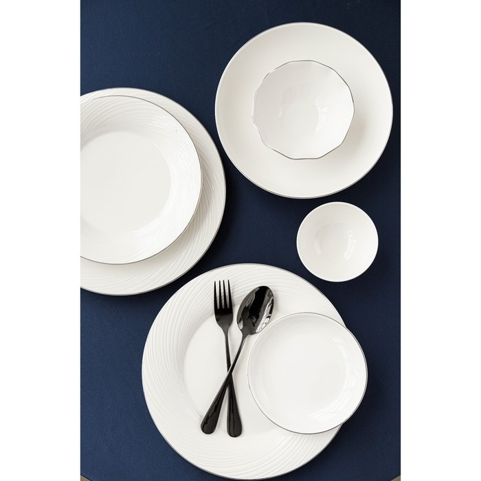 Посуда Magistro серии La Perle покорит лаконичным дизайном и молочной белизной натурального фарфора. Современная форма предметов подчеркнута элегантной серебряной окантовкой. Изделия из линейки La Perle можно использовать как в повседневной, так и в праздничной сервировке. Посуда станет чудесным подарком и дополнит коллекцию столового семейного фарфора.