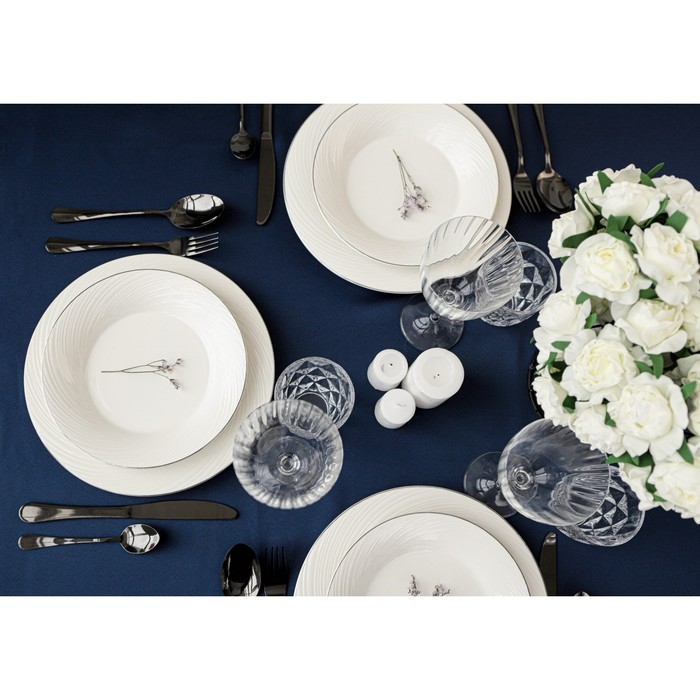 Посуда Magistro серии La Perle покорит лаконичным дизайном и молочной белизной натурального фарфора. Современная форма предметов подчеркнута элегантной серебряной окантовкой. Изделия из линейки La Perle можно использовать как в повседневной, так и в праздничной сервировке. Посуда станет чудесным подарком и дополнит коллекцию столового семейного фарфора.