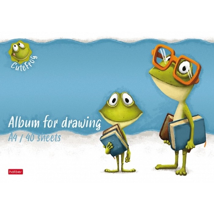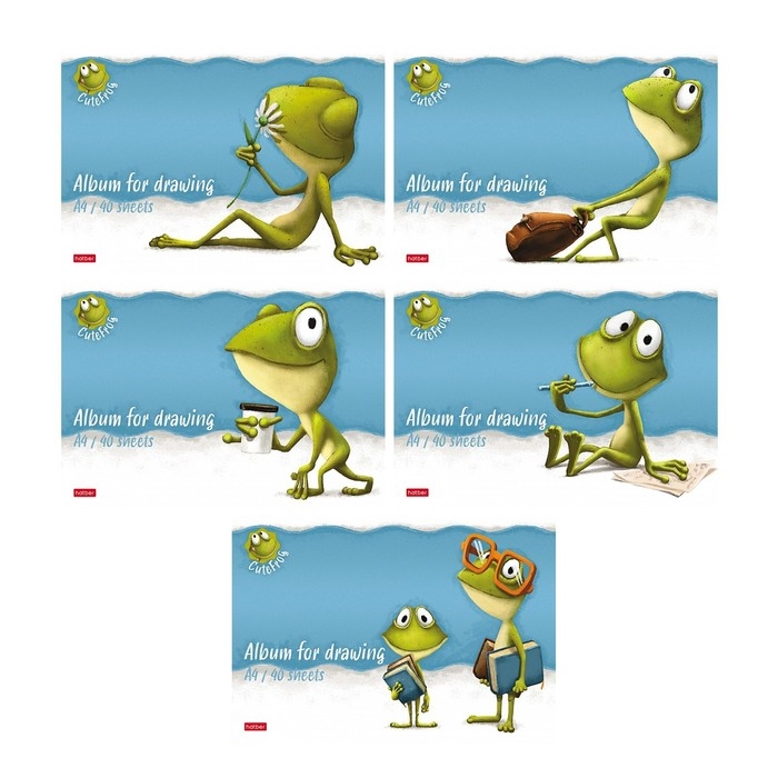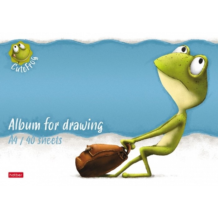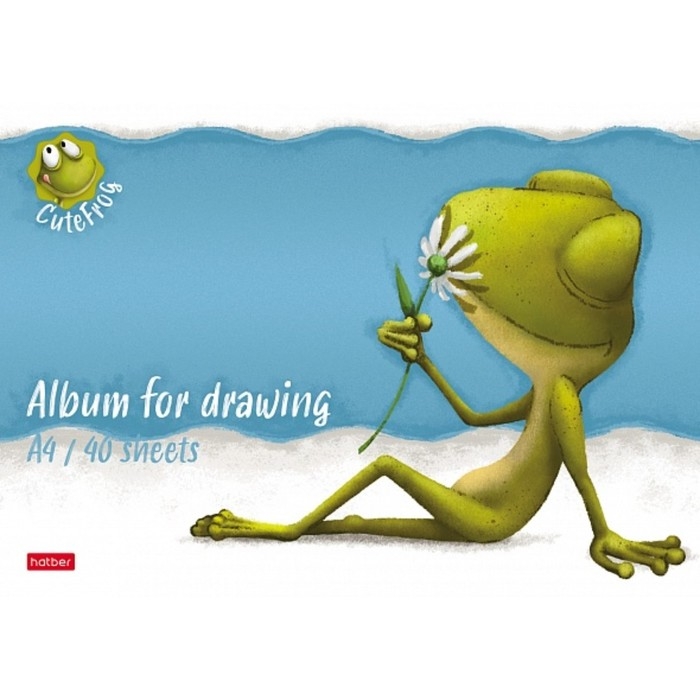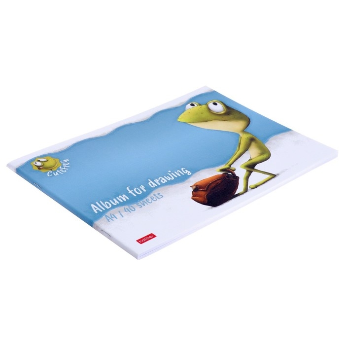 Альбом для рисования А4, 40 листов, на скрепке, "Лягушонок Ден", обложка мелованный картон, матовая ламинация, тиснение, блок 100 г/м², МИКС