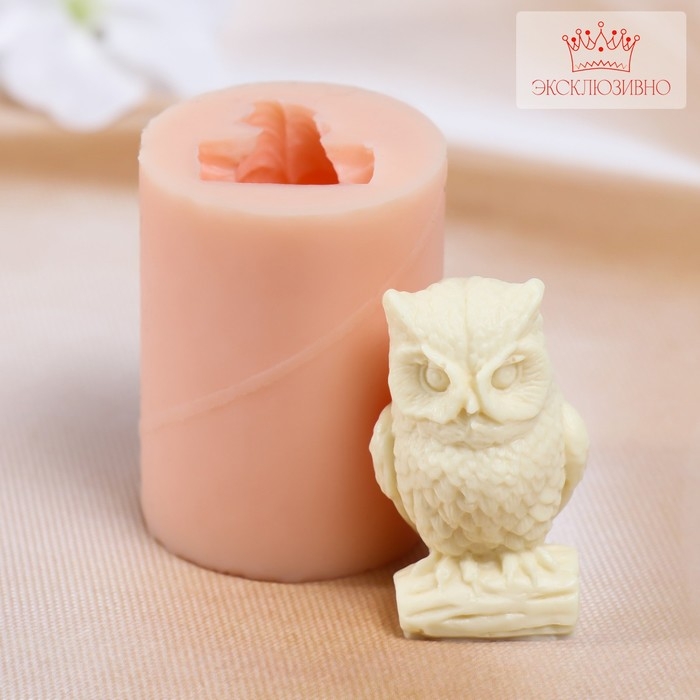 Молд силиконовый "Сова на бревне" 5х3,5х3,5 см