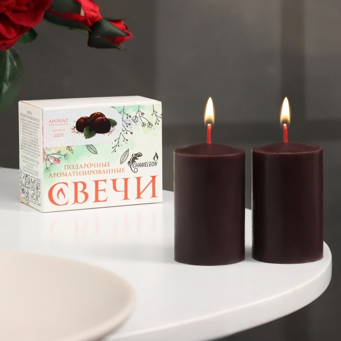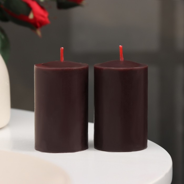 Набор свечей-столбиков 2 шт, 4х6 см, шоколадный трюфель