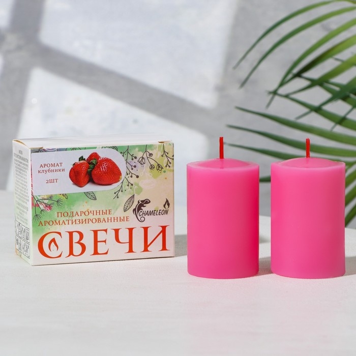 Набор свечей-столбиков 2 шт, 4х6 см, клубника