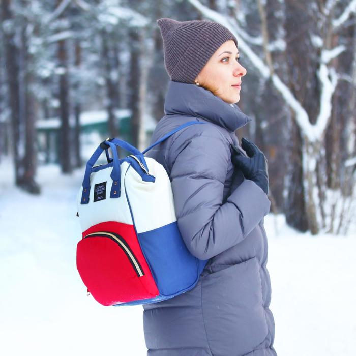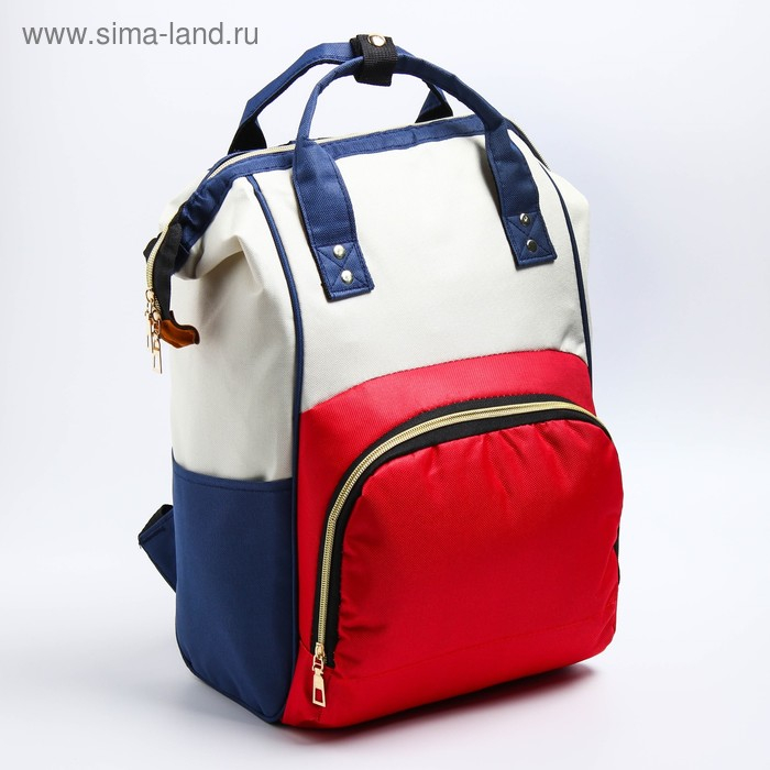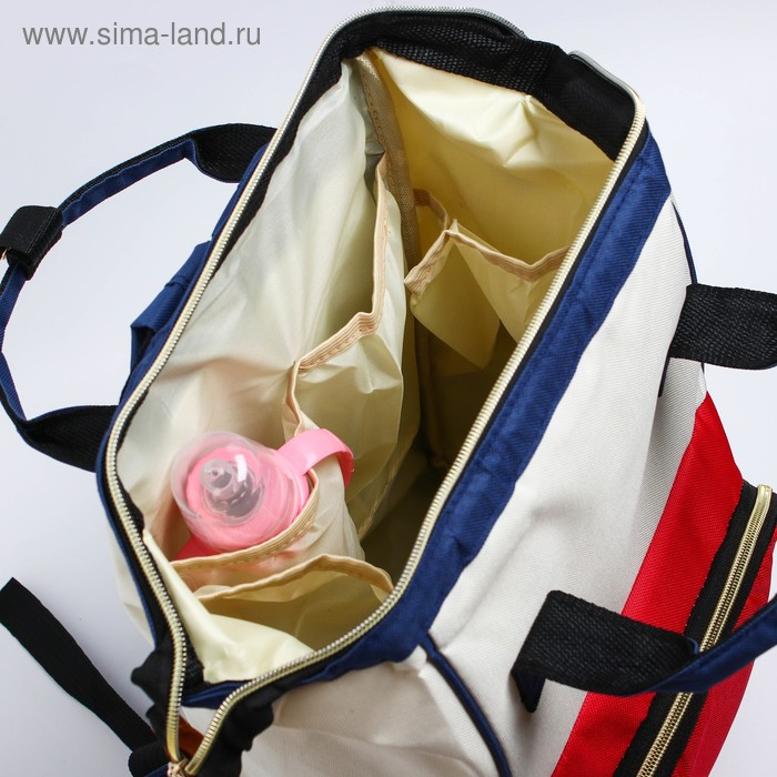 Сумка рюкзак для мамы и малыша с термокарманом, термосумка - портфель, цвет синий/красный