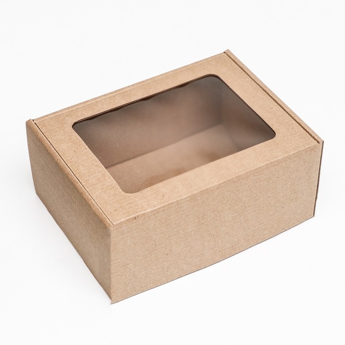 Коробка самосборная, бурая с окном, 22 х 16,5 х 9,5 см